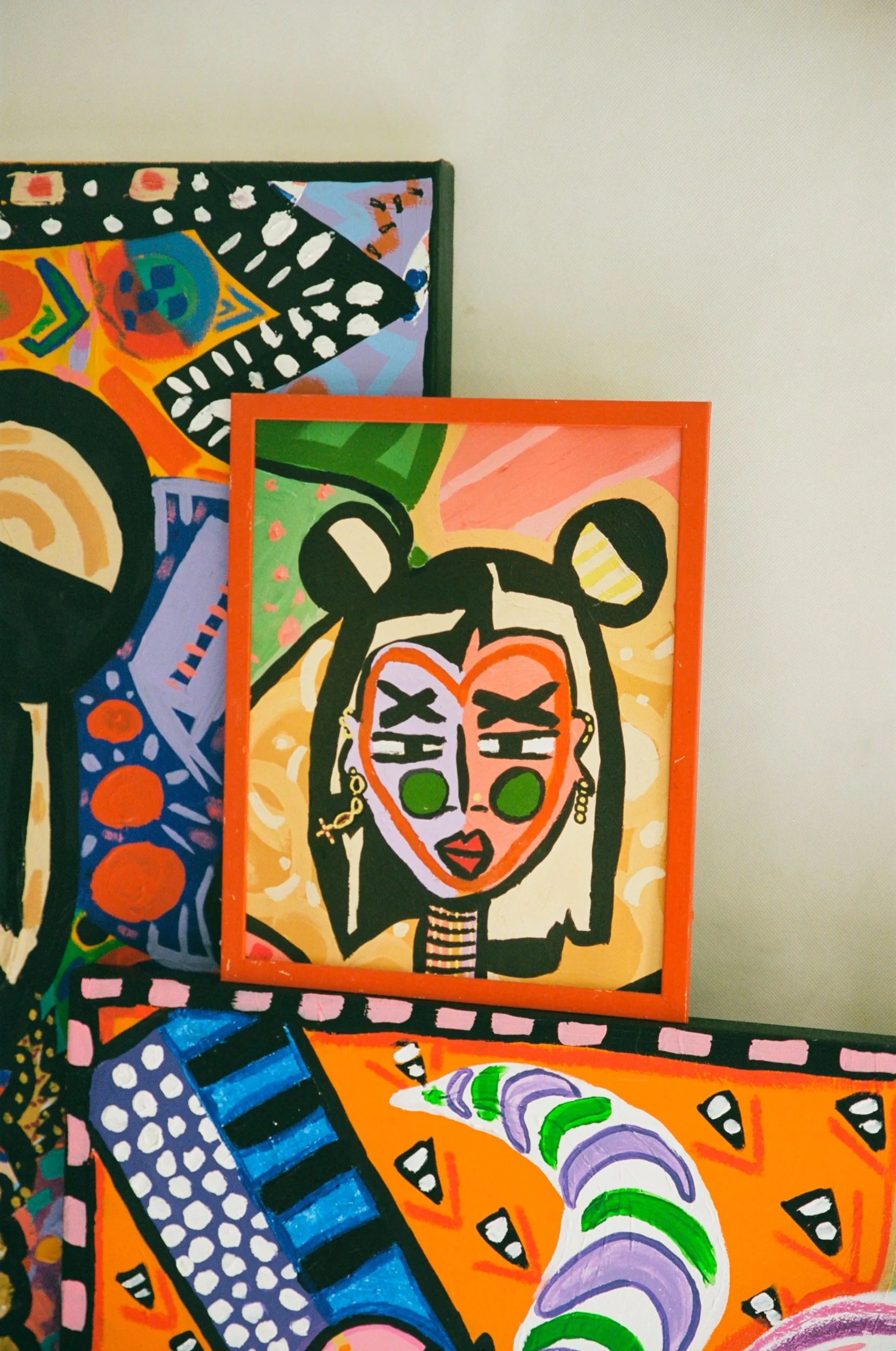 The work I create to me is a glimpse into the colourful minds of people I meet, people I dream about, or people I see myself as.